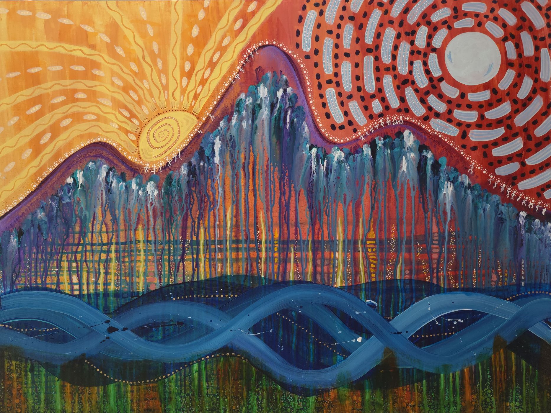 Her art is a practice in processing emotions, moving energy, and connecting to inner wisdom. It evolves from curiosity as colour playfully dances, drips, blends, smudges, and floats across a canvas or page, while the mind quiets and observes, as the heart and soul take over for a little while. In this space, colour is a fluid symbol, expressing and evoking emotion, providing perspective, antidote and transformation. At the heart of her art is freedom and joy.